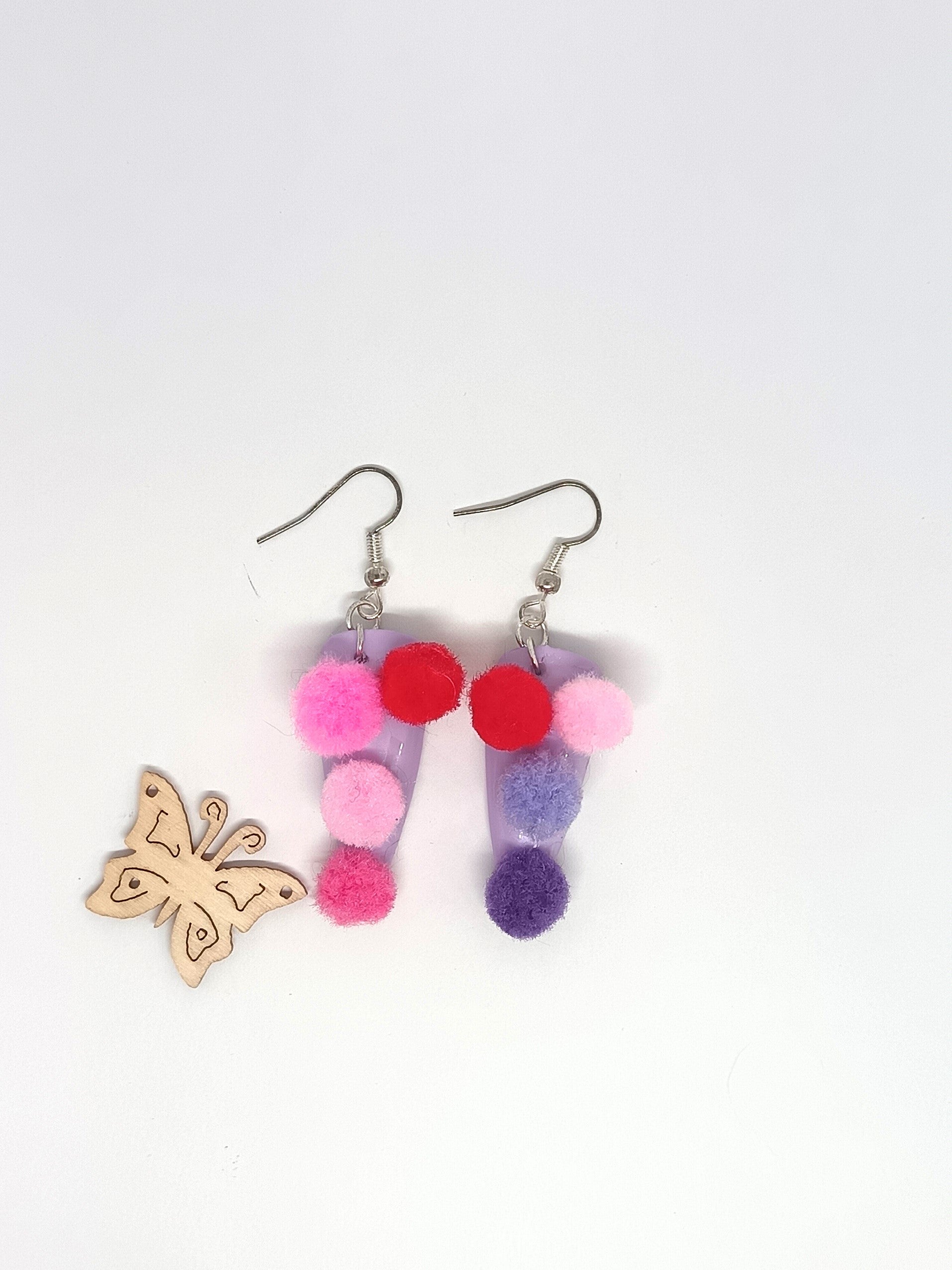 Press On kynnestä tehty koru. Päällä geelilakka. Etupuolella pienet pompomit. Korussa hopeoitu koukku. Nikkelitön ja allergiatestattu. Tuotteella ilmainen toimitus.