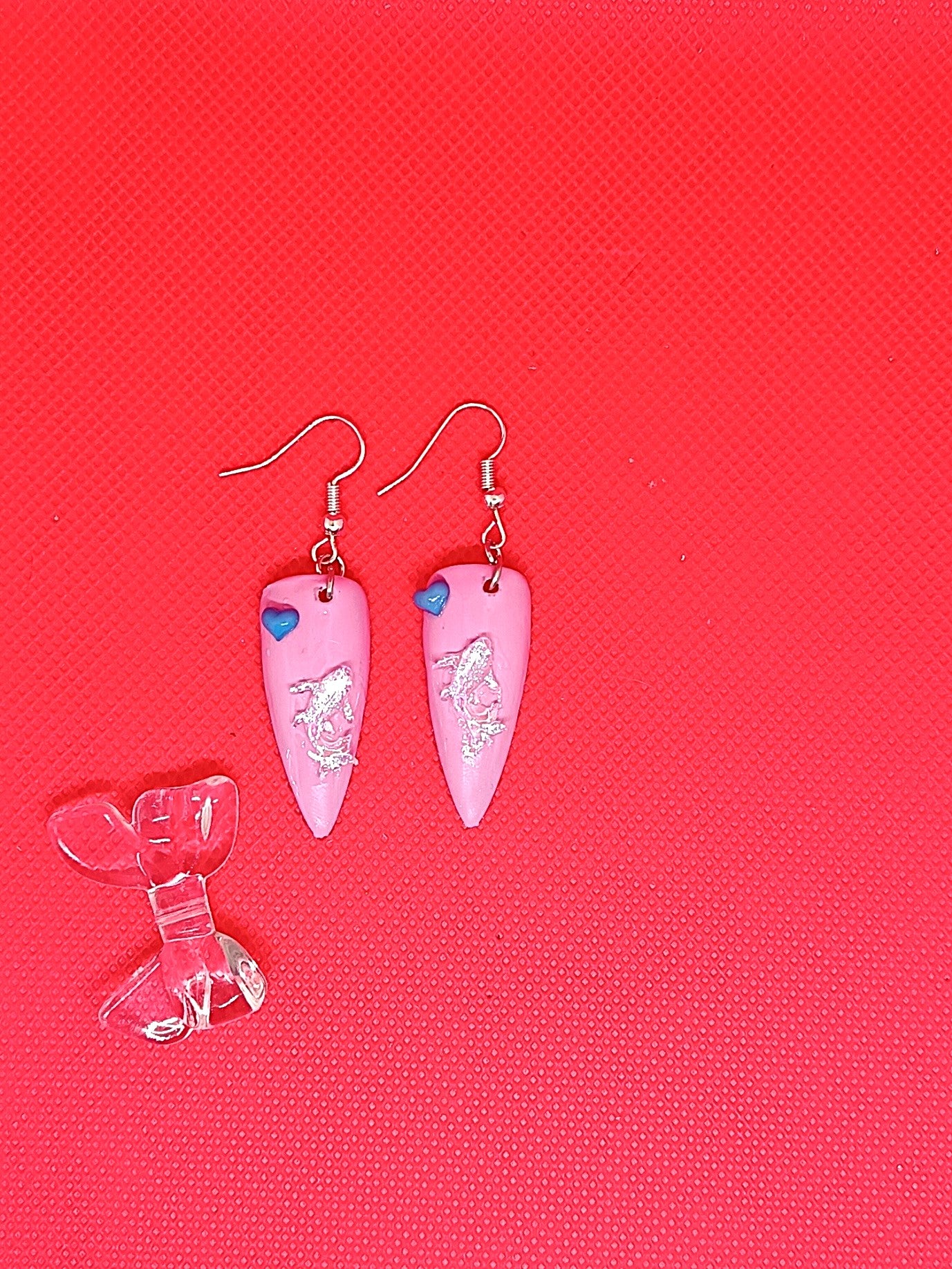 Press On kynnestä tehty koru. Päällä geelilakka. Etupuolella on koristeet. Korussa hopeoitu koukku. Nikkelitön ja allergiatestattu. Tuotteella ilmainen toimitus.