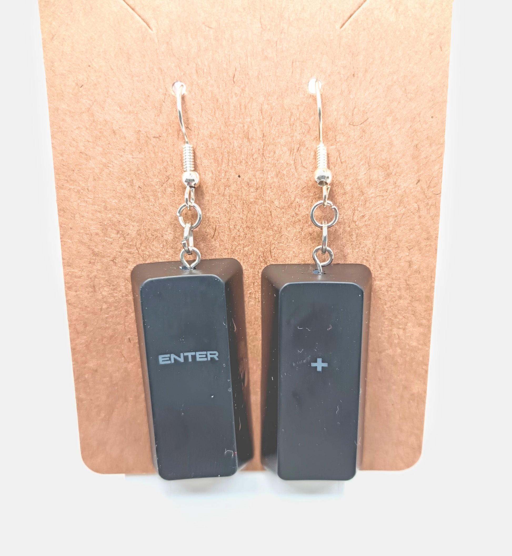 Kierrätysmateriaalina näppäimistöstä tehty hopeanvärinen koukkukorvakoru. Näppäin on täytetty epoxin kidehartsilla, joka on värjätty punaiseksi ja lilaksi. Näppäimistöt on desinfioitu. Tuotteella ilmainen toimitus
