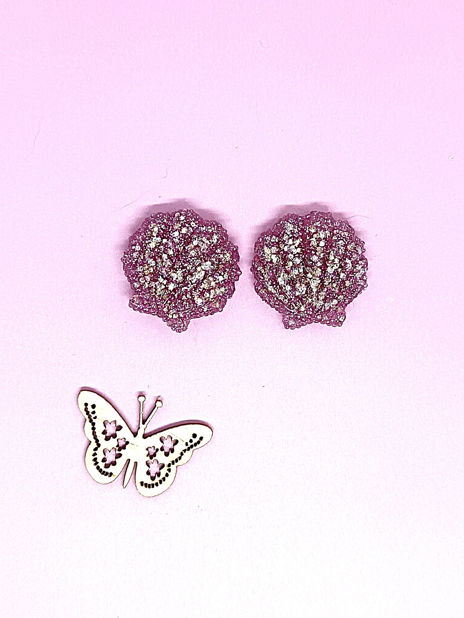 Hopeanvärinen rauta nappikorvakoru. Koru on GLOREXIN kidehartsia, joka on hhalean lilan värinen, seassa glitteriä. Nikkelitön ja allergiatestattu. Tuotteella ilmainen toimitus.