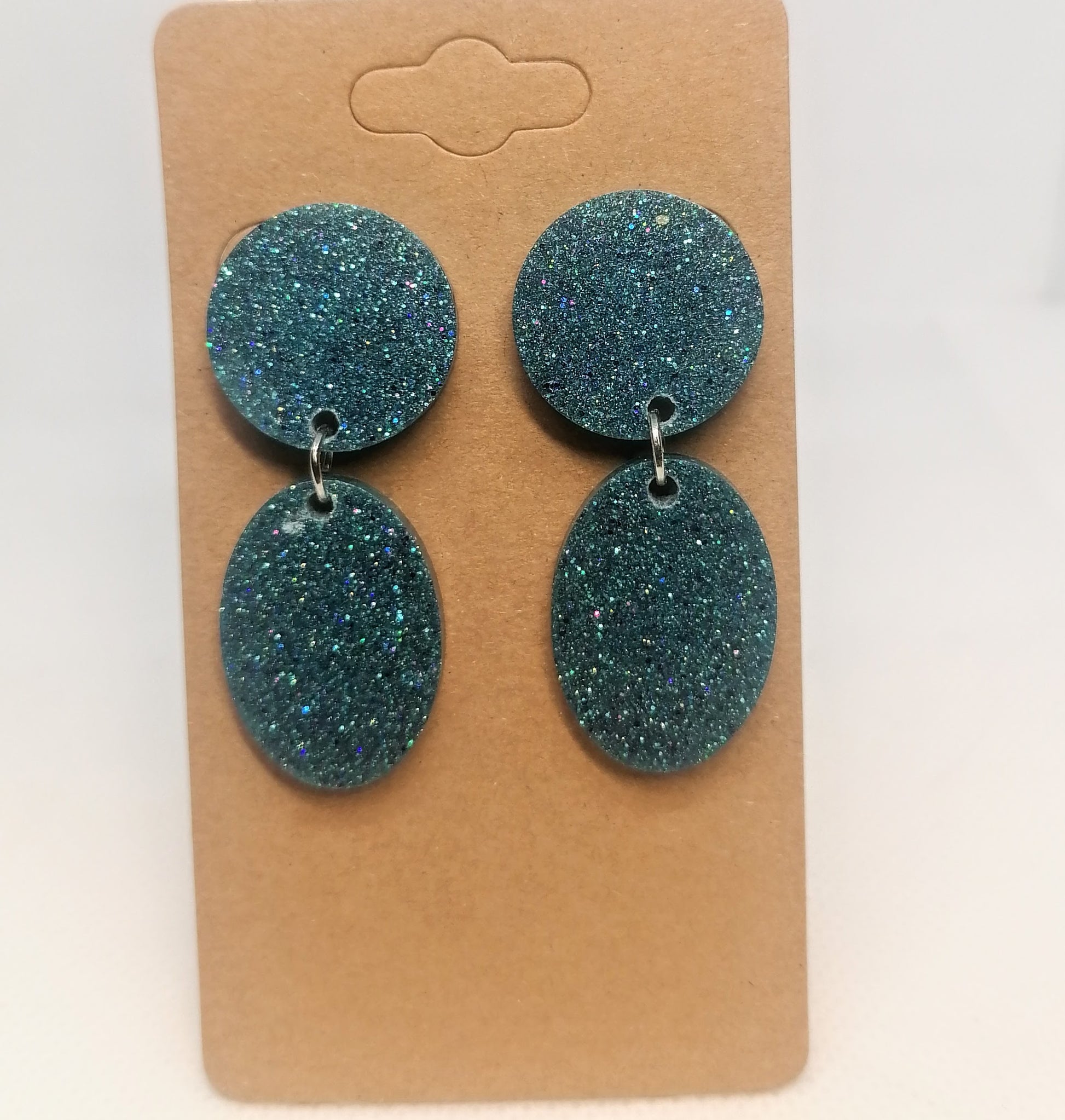 Hopeanvärinen rauta nappikorvakoru. Koru on glorexin kidehartsia, joka on värjätty sinisen sävyyn. Seassa myös glitteriä. Tuotteella ilmainen toimitus.