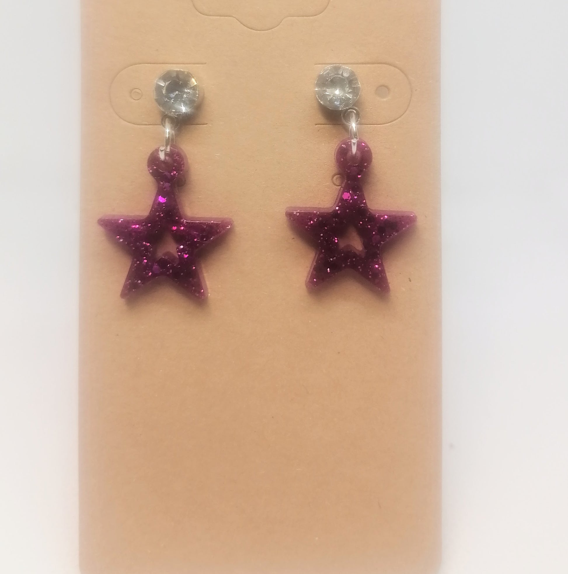 Hopeanvärinen nappikorvakoru timantilla ja riipuksella. Riipus on glorexin kidehartsia, joka on värjätty violetiksi. Seassa myös glitteriä ja hilettä. Tuotteella on ilmainen toimitus.