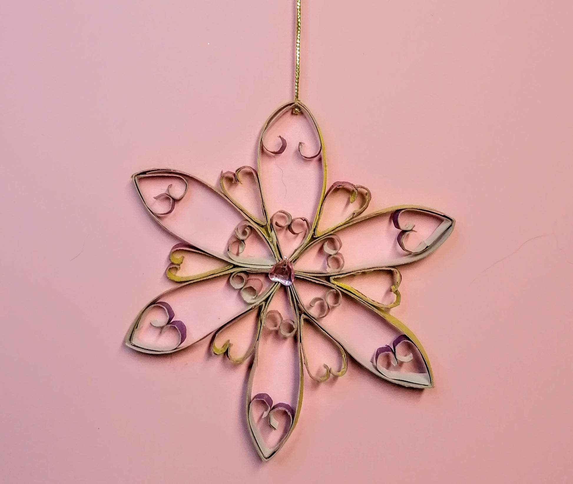 Tyhjistä paperirullista tehty koristetähti, värinä pinkki, violetti, sekä keltainen. Seassa myös puolitimantteja. Tuotteella ilmainen toimitus.
