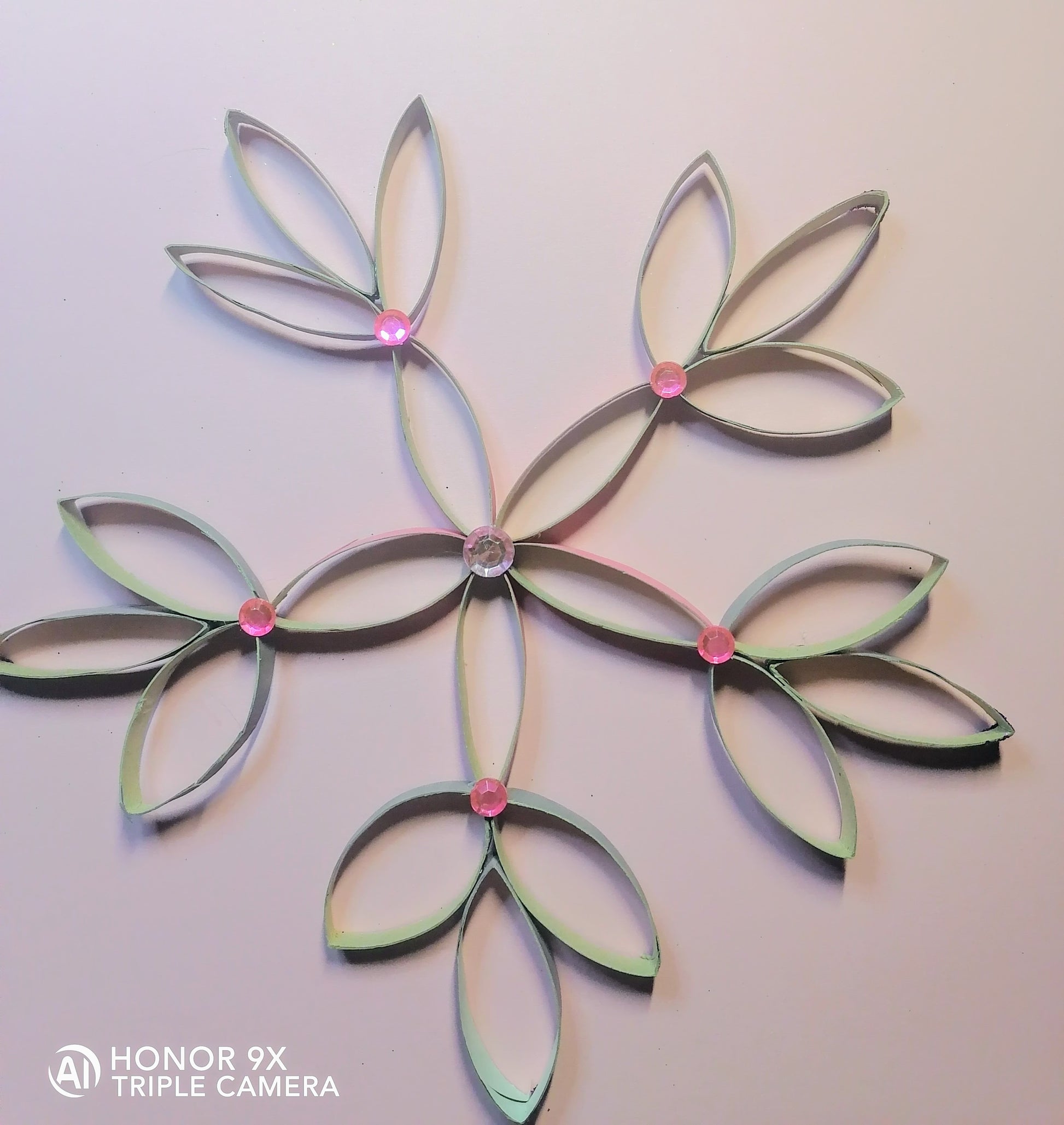 Tyhjistä paperirullista tehty koristetähti, värinä pinkki sekä vaalea lila. Seassa myös puolitimantteja. Tuotteella ilmainen toimitus.