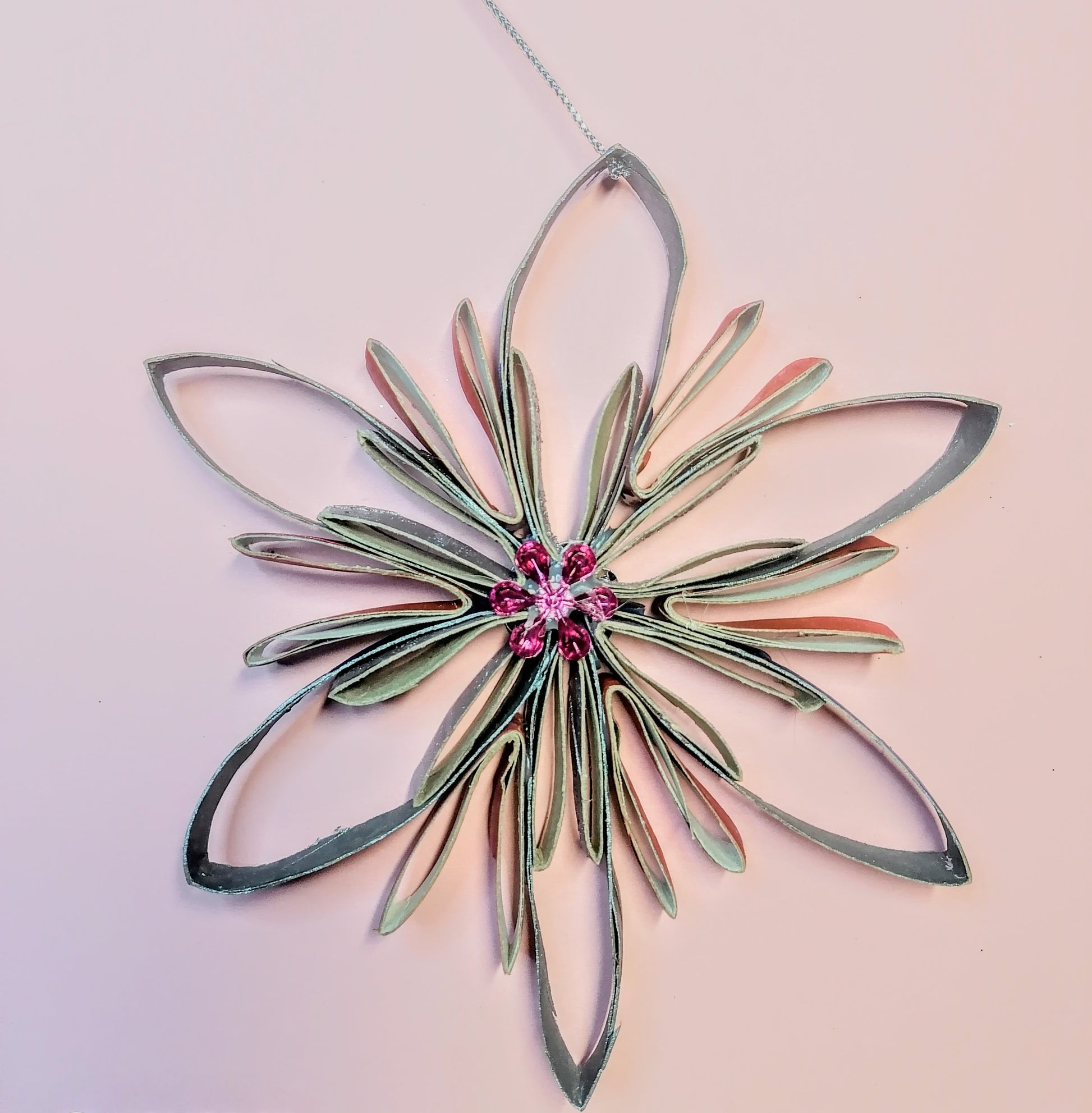 Tyhjistä paperirullista tehty koristetähti, värinä punainen, vaalea lila ja sininen. Seassa myös puolitimantteja. Tuotteella ilmainen toimitus.