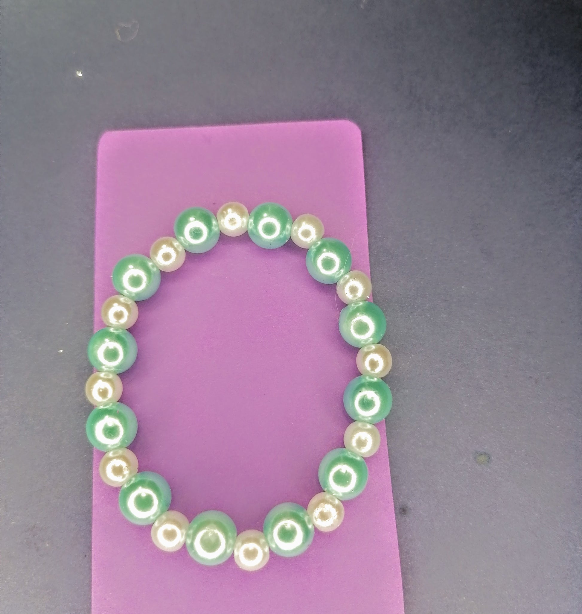 Hopeista ja turkooseista helmistä tehty rannekoru, tehty kuminauhaan. 17,5 cm. Tuotteella ilmainen toimitus.