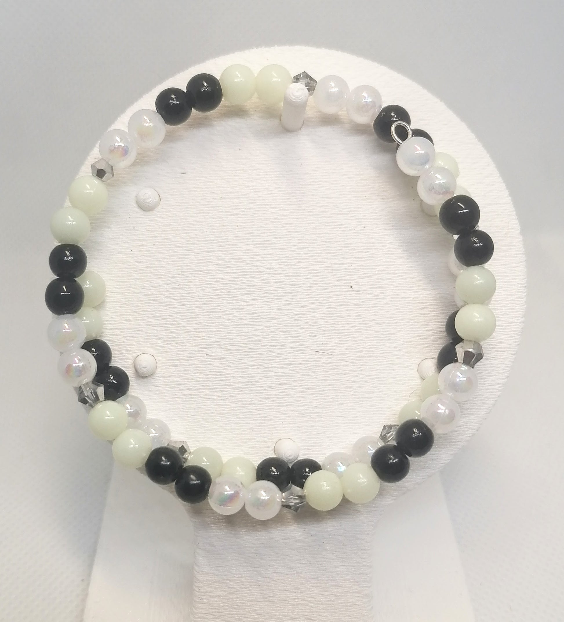 Rannekoru helmillä . Koru on hopeanväristä Memory vaijeria. Tuotteella ilmainen toimitus.